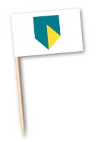 Ce pique brochette en bois est long de 15 cm avec un drapeau personnalisable (40 x 50 mm) en 1 couleur noire ou en quadri.